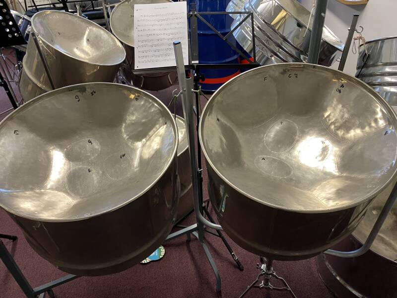 Verder nog verschillende soorten workshop steeldrums voor de workshop steelband.